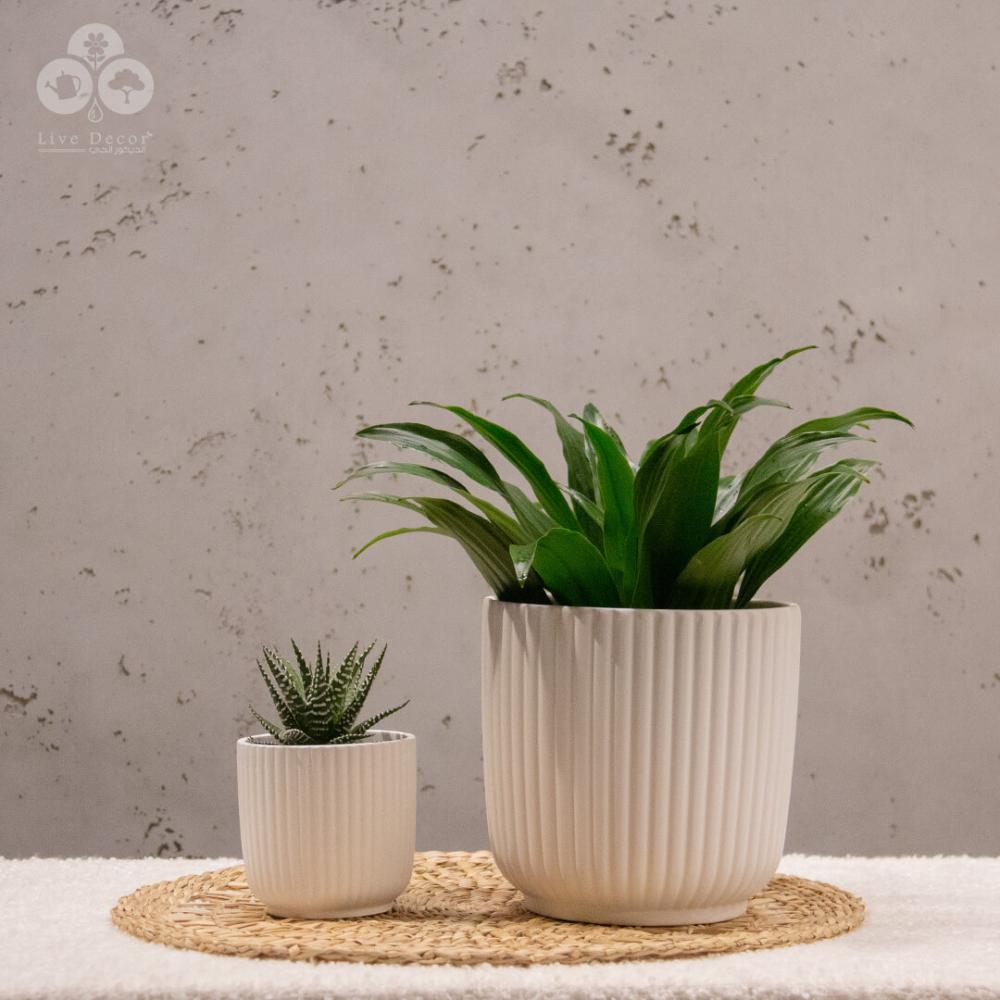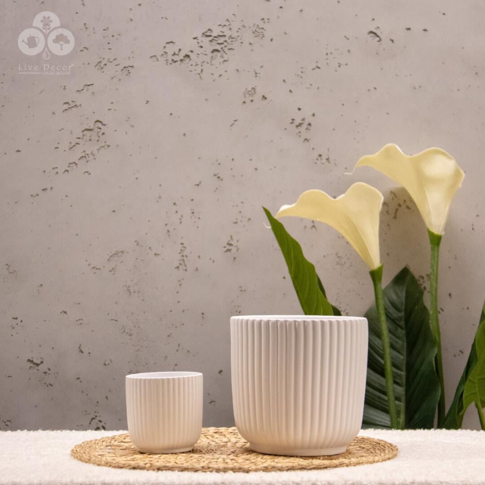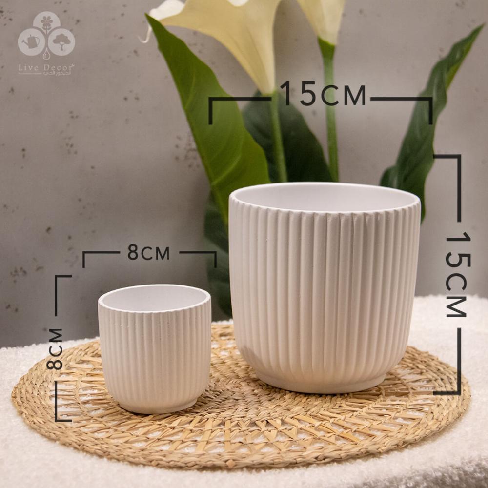 أضف لمسة من الأناقة والهدوء إلى ديكور منزلك مع هذا المركن السيراميكي العصري. يتميز بتصميم مخطط عمودي ناعم ولون أبيض أنيق يضفي إحساسًا بالانتعاش والهدوء. مثالي للنباتات الداخلية مثل الصباريات أو النباتات الورقية الصغيرة.